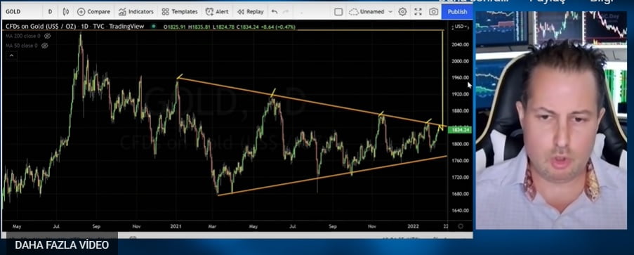 Elbette bunun ne zaman yaşanacağı belli değil. Soloway, şakayla karışık bir şekilde “Rusya Ukrayna’yı bugün işgal ederse 2.070 doların görülebileceğini” söylüyor. Soloway ayrıca enflasyonun artışına dikkat çekerek bunun altın fiyatlarını yükseltebileceğini iddia ediyor. 2020 yılının grafiğiyle paralel çizerek bakıldığında, altında büyük kırılmanın bu yılın Ağustos ayında gerçekleşme olasılığı olduğunu belirtiyor.