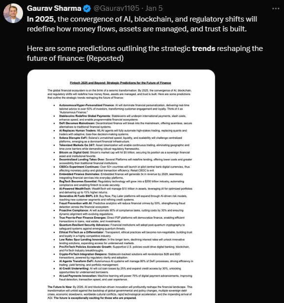 Finansal analiz firması Coalition Greenwich, 2025 yılı için öngördüğü 10 ticaret trendini duyurdu. Bu trendlerin büyük bir kısmı, kripto para piyasasıyla ilgili gelişmeleri kapsıyor. Analistler, 2025’te kriptonun ana akım finans dünyasına daha fazla entegre olacağına işaret ediyorlar. Kripto paraların geleneksel finansal sistemle daha yakın ilişkiler kuracağı öngörülüyor. Bu geçişin finansal piyasaları önemli ölçüde etkilemesi beklenmekte.