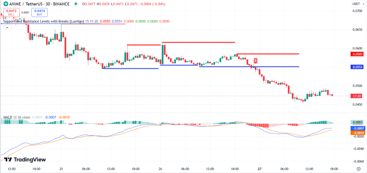 Eğer satışlar devam ederse, ANIME 0.0450 ve 0.0400 dolar desteklerini test edebilir. Kalıcı bir toparlanma için 0.0551 ve 0.0585 dolar direnç seviyelerinin aşılması gerekiyor. Ancak alıcı ilgisi düşük.