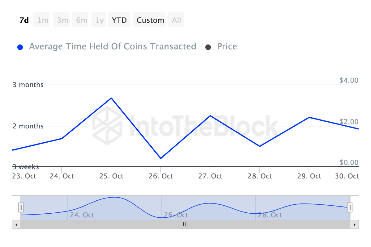 MOG Ortalama Tutma Süresi. Kaynak: IntoTheBlockMOG fiyat tahmini: Meme coin rallisi için anahtar seviyeler!