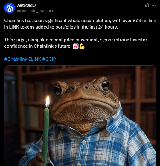 Artan yatırımcı güveni göz önüne alındığında, kripto borsalarından bu artan çekilme, boğa görünümünü temsil ediyor. Ayrı bir raporda LINK balina birikimindeki artıştan bahsediliyor. Son 24 saat içinde balinaların portföylerine 7,3 milyon LINK eklenerek token’a olan talep artırıldı. Balina birikimi ve yatırımcı interneti doğrudan token’ın uzun vadeli potansiyeline işaret ediyor ve dahası da var.