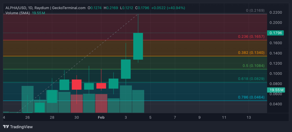 ALPHA, son 24 saat içinde %87’lik inanılmaz bir yükseliş kaydetti ve erken saatlerde 0.21 dolar seviyesinde tüm zamanların en yüksek değerine ulaştı. Ancak, fiyat daha sonra %9 oranında düştü.