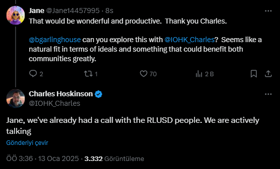 Aynı zamanda Hoskinson, IOG’nin bu tür ekosistem girişimlerini finanse etme fikrini reddetti ve şirketin özel kârlarının “halkın parası” olmadığını belirtti. Geçtiğimiz ay piyasaya sürülen RLUSD stablecoin, Bitstamp ve Bullish gibi borsalardaki listelemelerle şimdiden ilgi çekmeye başladı. Ripple Başkanı Monica Long geçtiğimiz günlerde, yakın gelecekte daha fazla borsa listelemesinin gerçekleşmesinin beklendiğini belirtti. Hoskinson, RLUSD ekibini defalarca övdü ve onların “akıllı profesyoneller” olduğunu iddia etti. Bununla birlikte, stabilcoin’i Cardano blockchainine entegre etmenin bir yolu olup olmadığı net değil.