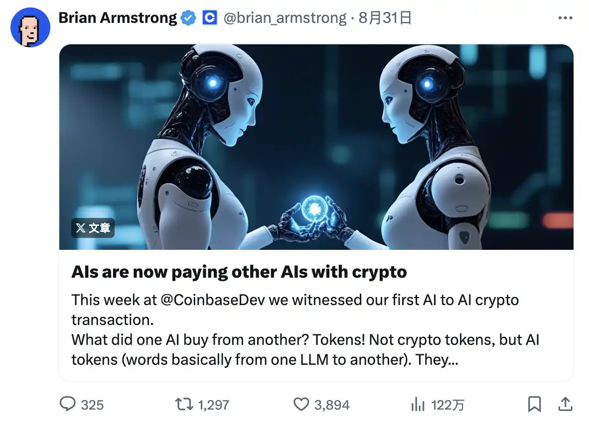 Coinbase CEO’su Brian Armstrong, sözlerine yanıt verircesine, geçtiğimiz Cumartesi günü Base ağında ilk YZ’den YZ’ye şifreli işlemin gerçekleştirildiğini ve bir YZ’nin başka bir YZ tarafından üretilen metin içeriğini (tokenler) satın almak için kripto para birimi (tokenler) kullandığını duyurdu.