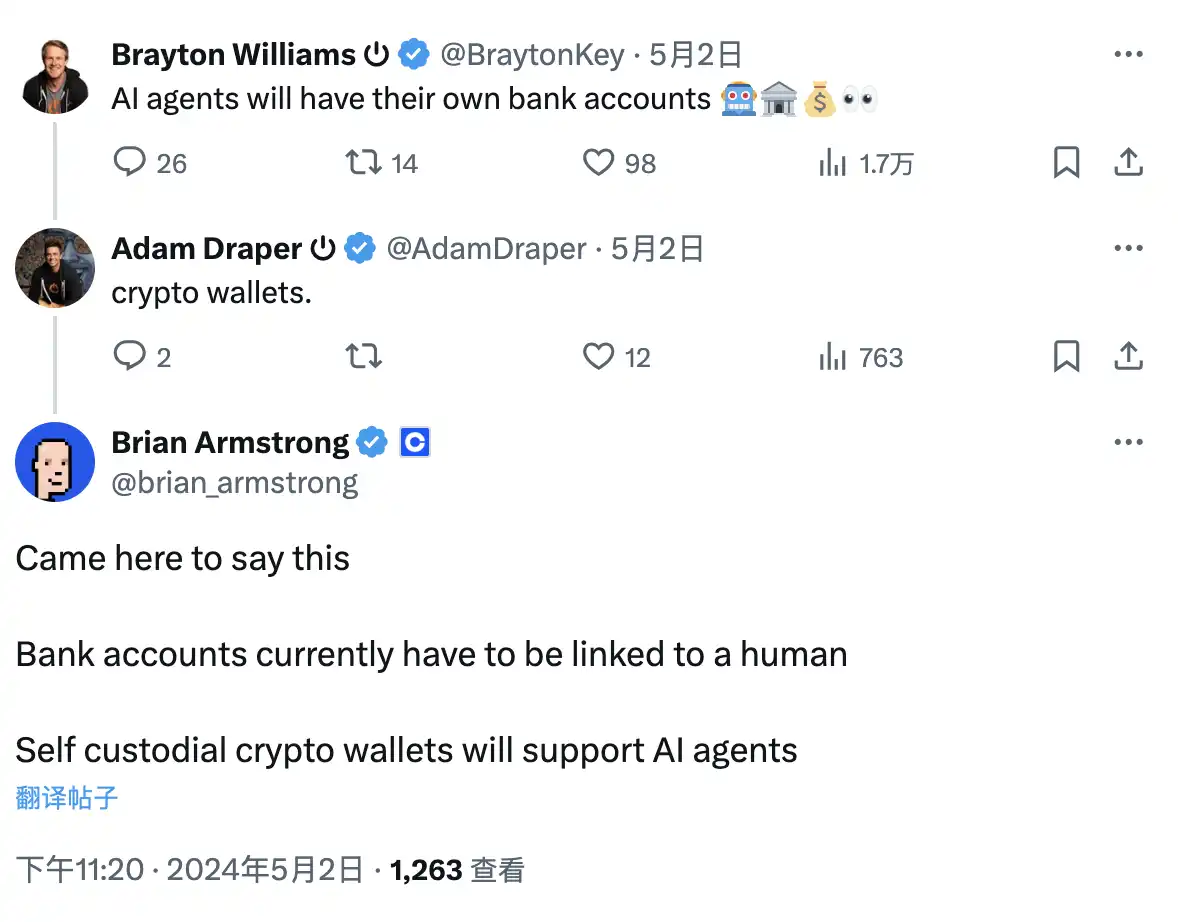 Coinbase Geliştirici Platformu (CDP) tarafından başlatılan çok partili hesaplama (MPC) cüzdanı, otonom olarak ödeme yapmasını sağlamak için AI Agent ile entegre edilebilir. Brian Armstrong, geliştiricileri ödeme yetenekleri elde etmek için bu cüzdanı YZ modellerine entegre etmeye ve böylece YZ’nin kaynak ve hizmet elde etmesine yardımcı olmaya teşvik ediyor. Coinbase için AI Agent’lara ödeme işlevleri eklemek bir heves değil, uzun vadeli bir plan. Brian Armstrong, bu yılın Mayıs başlarında, “self-custody kripto cüzdanlarının AI Agent’lar için destek sağlayacağını” belirtti. Daha sonra Coinbase, bir “CDP AI Builder Programı” başlattı. Bunu, MPC cüzdanları oluşturan AI robot geliştiricilerine fon sağlamak için amacıyla yaptı.
