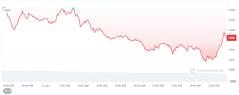 AERO günlük fiyat grafiği. Kaynak: CoinMarketCapDRIFT fiyatı da gün içinde düştüğü 1,12 dolar seviyesinden 1,19 dolar seviyesine yükseldi. Böylece token, gün içindeki kayıplarının bir kısmını telafi etti. DRIFT, yazı sırasında günlük bazda %5,66 düşüşle 1,18 dolar seviyesinde işlem görüyordu. Bu arada, tokenin işlem hacmi gün içinde %23 düşüş gördü. Bu da yatırımcıların ve traderların tokene olan ilgisini kaybettiğini işaret ediyor.