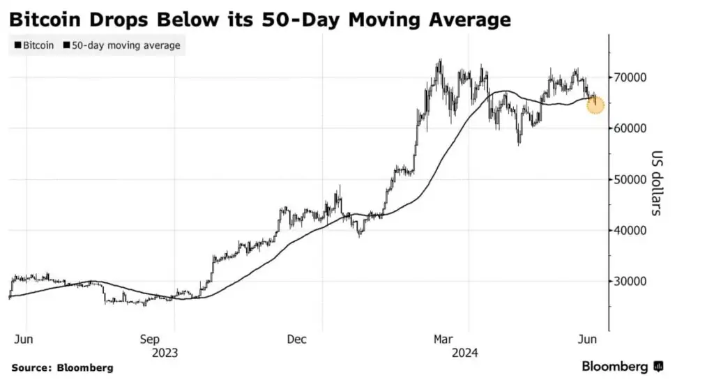 Kriptokoin.com’dan takip ettiğiniz üzere Bitcoin, dijital varlık yatırım ürünlerinden önemli çıkışlar ve uzun süreli yüksek ABD borçlanma maliyetlerine ilişkin endişelerin kripto para piyasasını etkilemesiyle bir ayın en düşük seviyesine indi. BTC 18 Haziran’da 64.000 dolar sınırına kadar bir düşüş yaşayarak en son Mayıs ortasında görülen bir seviyeye ulaştı. Bunun ardından hafif bir toparlanma göstererek 64,858 dolardan işlem gördü. Bu düşüş, Bitcoin’in 50 günlük hareketli ortalamanın önemli bir destek seviyesine düştüğünü gösterdi. Ayrıca, kripto piyasasında kısa vadeli bir düşüş trendine işaret etti.