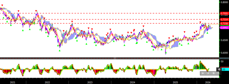 Aşağıdaki görselde daha önceki değerlendirmemiz sırasında tayin ettiğimiz teknik dirençleri göreceksiniz. 0.7158’deki ilk direnç etkin çalışmış ve pariteyi aşağı göndermişti. Ancak bu sefer direncin geçit verebileceğini değerlendiriyoruz. Uzun yolun sonunda ise bu ikilinin 0.7550 bölgesine kadar tırmanma ihtimalini aradaki faiz farkı, RBA’in faiz artırmaya devam edebileceğine dair söylemleri ve yakın zaman önce Miran ve Goolsbee’nin enflasyon hedefini tutturacaklarına dair açıklamalarına dayanarak yüksek görüyoruz.