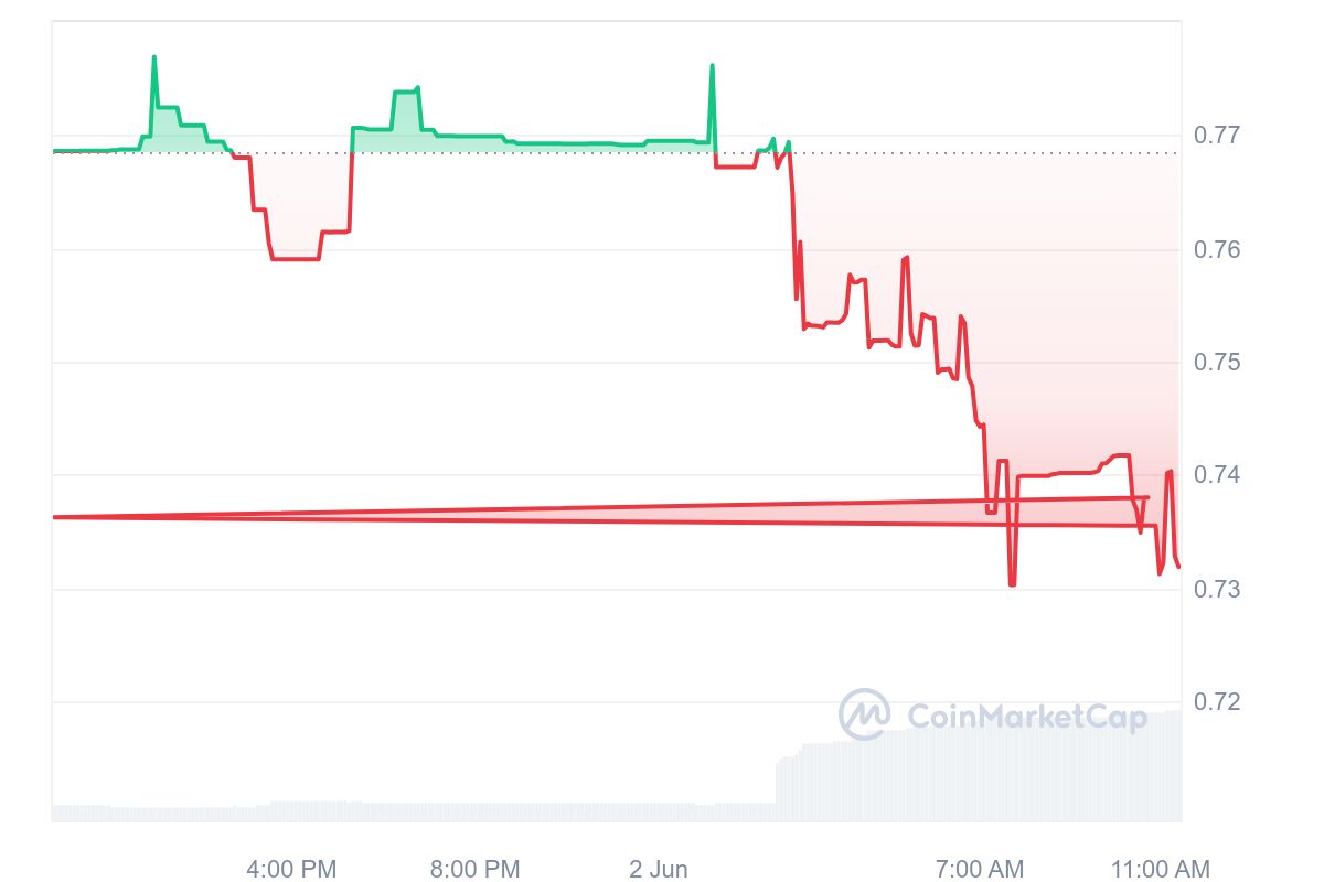 Bildiride yer alan ifadeler, kripto para yatırımcılarını bir çıkmazda bıraktı. Velocore ekibinin istismarın mekanizmasını bulması olumlu bir gelişme olarak görülse de, çalınan fonların geri kazanılıp kazanılamayacağı henüz belirsizliğini koruyor. Bu sırada, Velocore’un VC isimli altcoin projesinde değer kaybı dikkat çekti. Kripto para birimi, aşağıdaki 24 saatlik grafikte de göreceğiniz üzere, 0.78 dolardan 0.73 dolara kadar geriledi.