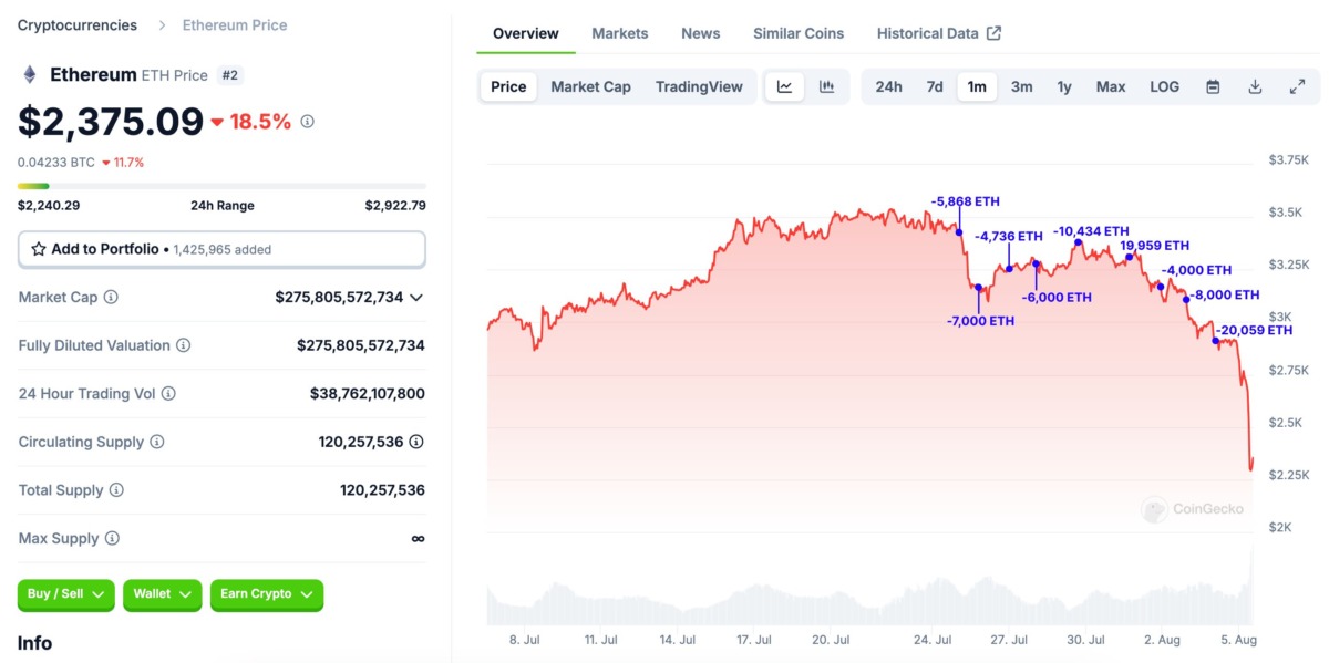 Jump Trading Eter satışı. Kaynak: LookonchainPiyasa yapıcılar mı altcoin fiyatını 2.200 doların altına mı düşürdü?