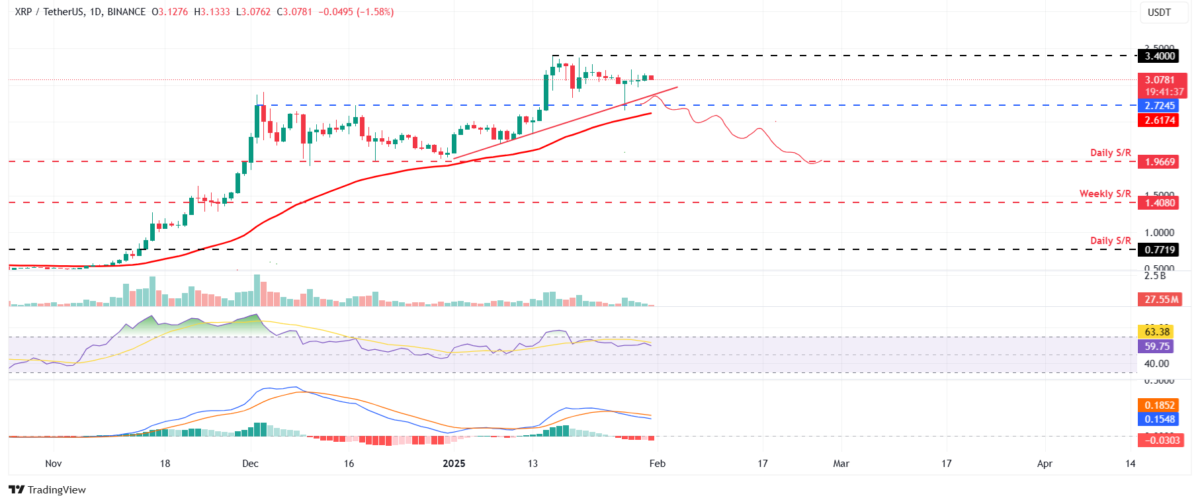 RSI göstergesi, nötr değeri olan 50’nin üzerinde 59 değerini gösteriyor. Bu da aşırı alım seviyesi olan 70’ten reddedildikten sonra aşağıya doğru işaret ederek yükseliş momentumunda zayıflığa işaret ediyor. Buna ek olarak, MACD Pazar günü düşüş eğilimi göstererek satış sinyalleri verdi ve düşüş trendine işaret etti. Öte yandan, XRP yukarı yönlü ivmesini sürdürürse, 3,40 dolar direnç seviyesini test etmek için ralliyi uzatabilir.