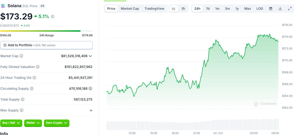 Ayrıca Solana (SOL) %5 oranında bir artışla 174 dolar seviyesine çıktı. Coin’in gün içindeki en düşük fiyatı 164,19 dolar, en yüksek fiyatı ise 174,65 dolar oldu. Buna ek olarak kripto paranın piyasa değeri bugün 81,89 milyar dolara ulaştı. Özellikle, Solana’nın Ethereum’u günlük işlem ücretlerinde geride bırakması, yatırımcıların dikkatini çekti.