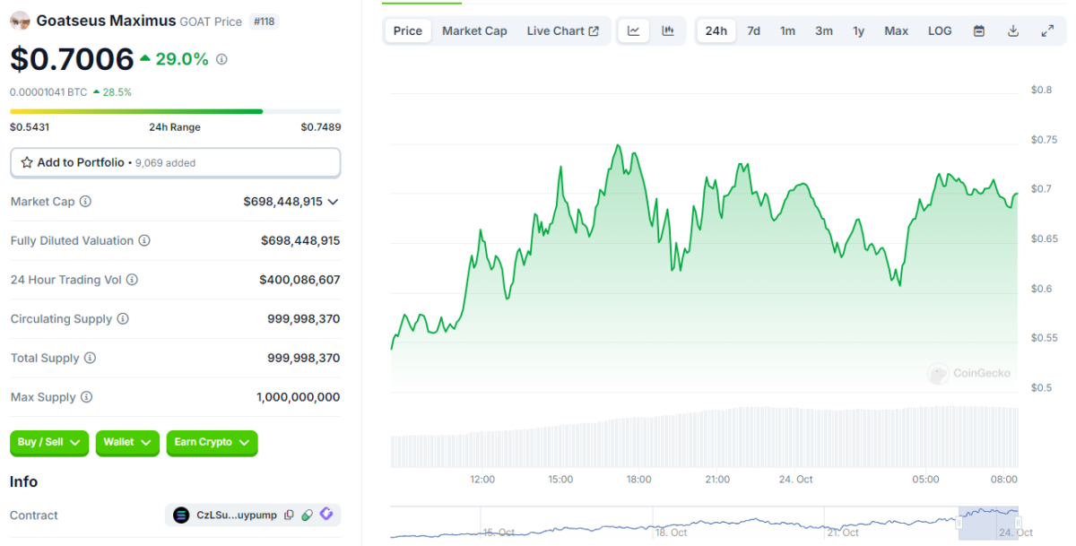 Goatseus Maximus (GOAT) %50’lik artışıyla günün dikkat çeken coinlerinden biri oldu. Şu anda 0,7004 dolardan işlem gören GOAT, gün içi en düşük 0,5396 dolar ve en yüksek 0,7525 dolar fiyat aralığında hareket etti. Bununla birlikte, POPCAT %15 artışla 1,63 dolara ulaştı. Öte yandan, ApeCoin (APE) %10 oranında düşüşle 1,17 dolardan işlem görüyor. Aptos (APT) de %4 düşerek 10 dolar seviyesine geriledi. Son olarak, kripto piyasasındaki bu dalgalanmalar, kısa vadeli yatırımcılar için kritik bir dönem işareti taşıyor.