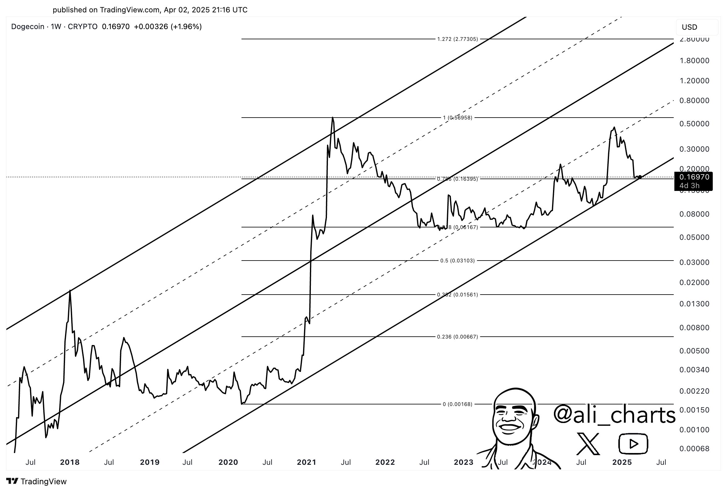 CryptoELITES takma adlı analist, Dogecoin için yükseliş tahmininde bulundu. Analist, X’teki yakın tarihli bir gönderide, DOGE için bir sonraki önemli hedefleri gösteren bir grafiği vurguladı. Tahmine göre, meme coin muhtemelen bir sonraki adımda 0,75 dolara tırmanacak, ardından 1,50 dolara ve hatta 2,70 dolara bir çıkış gelecek. Bu arada, analist Dogecoin fiyatının zaten dip yaptığını ve fiyatın Nisan ayı sonu veya Mayıs ayı başında en az 2 dolara ulaşmasını beklediğini belirtti.