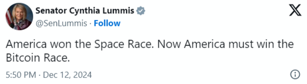 ABD Senatörü Cynthia Lummis, Donald Trump’ın görüşlerini yineledi. Bu bağlamda, Amerika’nın uzay yarışında olduğu gibi “Bitcoin yarışında” da liderlik etmesi gerektiğini söyledi. Lummis, ABD’nin ekonomik geleceğini güvence altına almak için kripto para birimi endüstrisine hakim olmasının önemini vurguladı. Lummis, Bitcoin ve daha geniş kripto para piyasalarında güçlü bir pozisyonun ABD’ye küresel çapta rekabet avantajı sağlayacağına inanıyor. Sözleri, Trump’ın kripto para birimi liderliğine proaktif bir yaklaşım vizyonuyla uyumlu. Lummis, “Bunu gerçeğe dönüştürmenize yardımcı olmaya hazırım.” dedi.