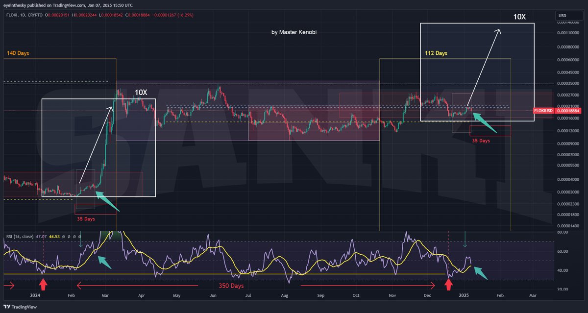 Kripto analisti Master Kenobi de bir FLOKI fiyat rallisinin yakın olduğunu tahmin ediyor. Bununla birlikte, FLOKI’nin önemli bir pompadan önce dalgalanmaya tanık olabileceği aşamada olduğunu belirtiyor.
