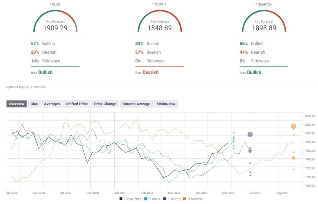 Altın’a yönelik duyarlılık anketine bakıldığında, 1.909 dolarlık ortalama hedefle gelecek hafta yükseliş bekleniyor. Ancak bir aylık görünümde trend düşüşe geçiyor ve uzmanların çoğu altın’ın ikinci çeyreğin sonuna doğru derin bir düzeltme kaydedeceğini düşünüyor.