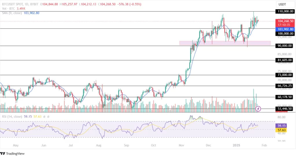 Bitcoin grafiğinde basit hareketli ortalama (SMA) güçlü bir destek sunuyor. Ancak, RSI göstergesi zayıflama işaretleri veriyor. Eğer piyasa olumlu bir ivme kazanırsa, Bitcoin’in fiyatı 110.000 dolara kadar yükselebilir. Aksi durumda, 102.000 dolar seviyesine doğru bir düzeltme yaşanabilir.