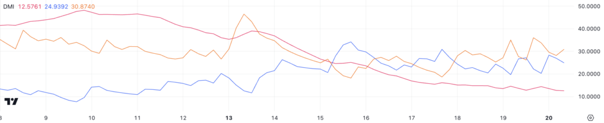 Ethereum (ETH) fiyatları, şu sıralar belirsizlik içindeyken anahtar göstergeler net bir yönü işaret etmiyor. DMI (Yönlü Hareket İndeksi), birkaç gündür ADX değerinin 20’nin altında olduğunu gösteriyor. Bu durum, piyasanın kararsız olduğunu ve belirgin bir trendin bulunmadığını ortaya koyuyor.