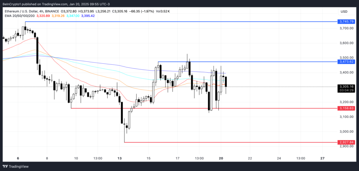 ETH’nin EMA (Üssel Hareketli Ortalama) çizgileri net bir yön sunmadığı için belirsizliği yansıtıyor. 13 Ocak ile 16 Ocak arasında ETH’nin fiyatı yükseldi. Fakat, son yedi gün içerisinde diğer büyük kripto varlıkların performansının gerisinde kaldı. BTC %17, XRP %36 ve SOL %43 değer kazanırken ETH yalnızca %7,6 artış kaydetti.