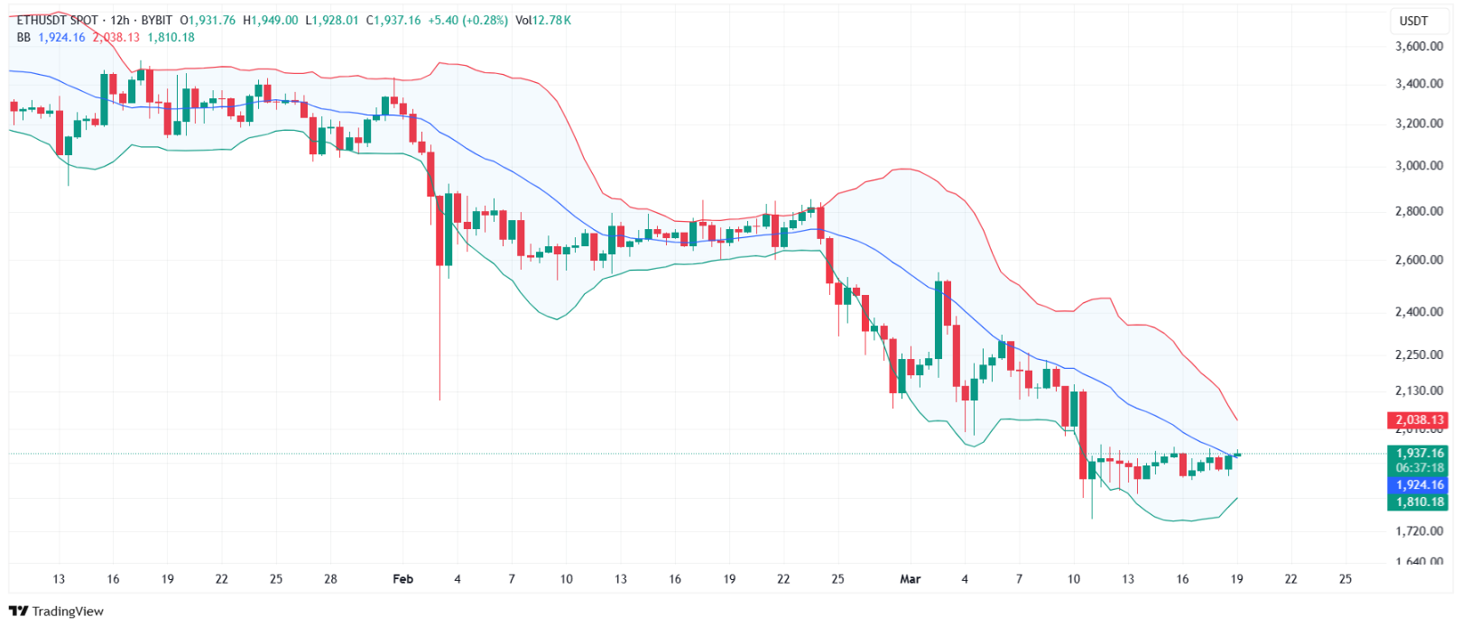 Ethereum (ETH), son haftalarda toparlanma sinyalleri vermesine rağmen düşüş eğiliminden kurtulmakta zorlanıyor. Şu anda $1.936 seviyesinde işlem görüyor ve kritik destek seviyesi olan $1.862’nin hemen üzerinde tutunmaya çalışıyor. Ancak azalan volatilite ve zayıflayan piyasa ilgisi, ETH fiyatını daha da aşağı çekebilir. Teknik göstergeler ve yatırımcı davranışları, Ethereum’un 17 ayın en düşük seviyesine gerileyebileceğini gösteriyor.