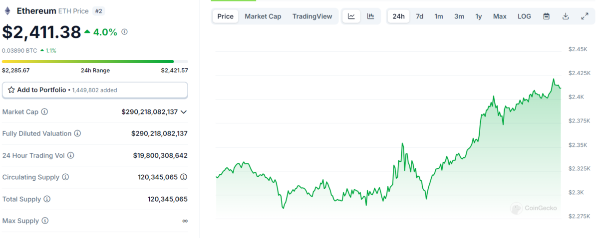 Ethereum (ETH), son 24 saatte %3’e yakın bir değer artışı yaşadı. Şu anda 2.407 dolardan işlem gören ETH’nin gün içi en düşük ve en yüksek seviyeleri sırasıyla 2.278,66 dolar ve 2.408,26 dolar olarak kayıtlara geçti. Ayrıca spot ETH ETF’lerinden 9,74 milyon dolarlık çıkış olmasına rağmen Ethereum, yükselişine devam ediyor. Özellikle son FOMC toplantısının ardından ETH fiyatı hareketlilik yaşadı.
