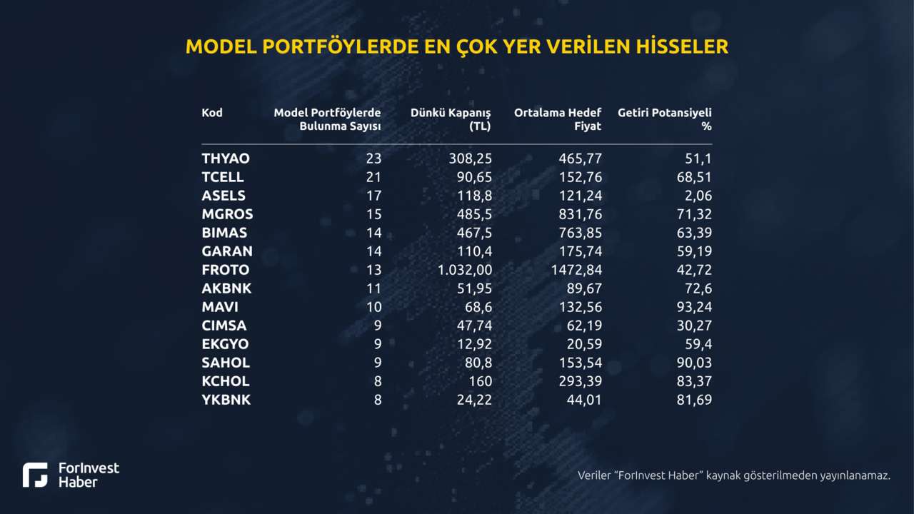Bunları 14 model portföyde yer alan Garanti BBVA, 13 model portföyde yer alan Ford Otosan, 11 model portföyde yer alan Akbank ve 10 model portföyde yer alan Mavi takip etti.