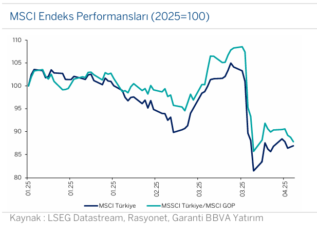 Mevcut negatif ayrışmanın 17-30 Nisan tarih aralığına kadar sürmesi halinde, 16 şirkete sahip MSCI Türkiye endeksinden Mayıs ayı gözden geçirmesinde 1 hissenin çıkması riski gündeme gelebilir.