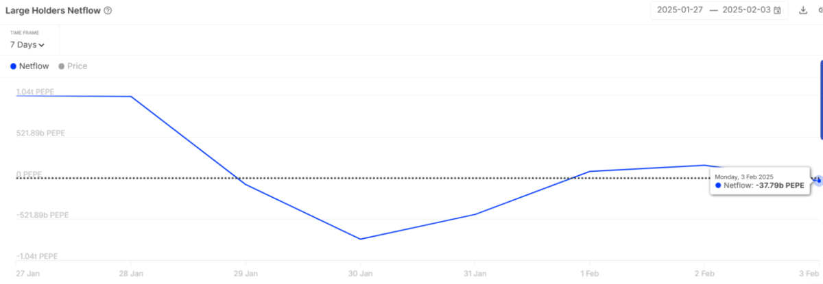 PEPE balinaları, fiyatın üç ayın en düşük seviyesine yaklaşmasının ardından 24 saat içinde 190 milyar token sattı. Ancak PEPE, olumsuz piyasa koşullarına rağmen %7 değer kazanarak toparlanma sinyali verdi.