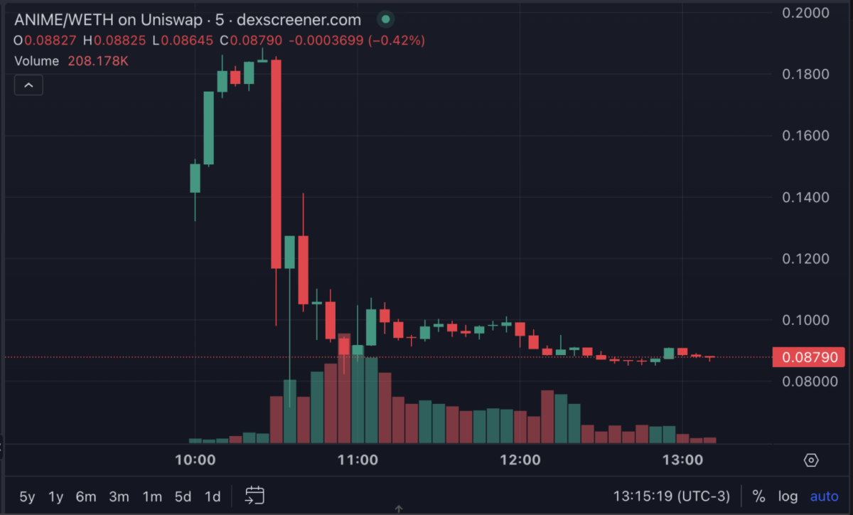 İlk lansmanında büyük ilgi gören ANIME, kısa sürede büyük bir volatilite yaşadı. Altcoinin piyasa değeri 350 milyon dolar civarında. Buna rağmen, lansman fiyatından sadece altı saat içinde %40 oranında düşüş meydana geldi. Şu anda tokenin 10.000’in üzerinde benzersiz sahibi bulunmakta. Toplamda 13.000 işlem gerçekleşti.