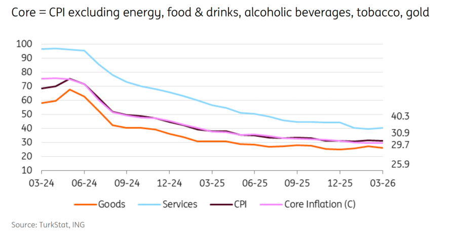 Manşet enflasyondaki düşüşe rağmen, çekirdek enflasyon (TÜFE-C) göstergeleri piyasaya daha temkinli bir mesaj veriyor. Mart ayında çekirdek enflasyon aylık %1,64 artışla yıllık bazda %29,7 seviyesine yükseldi. Bu yükseliş, dezenflasyon sürecinin önündeki yapısal zorlukların ve fiyatlama davranışlarındaki bozulmanın henüz kontrol altına alınamadığının bir işareti olarak kabul ediliyor. Özellikle hizmetler enflasyonunun %40,3 seviyesine tırmanmış olması, sektördeki fiyat ataletinin (inertia) boyutlarını gözler önüne seriyor. Mevsimsellikten arındırılmış veriler de ana eğilimin hala %2 seviyesinin oldukça üzerinde olduğunu, çekirdek göstergelerdeki yukarı yönlü hareketin dezenflasyon hedefleri önünde ciddi bir engel teşkil ettiğini doğruluyor.