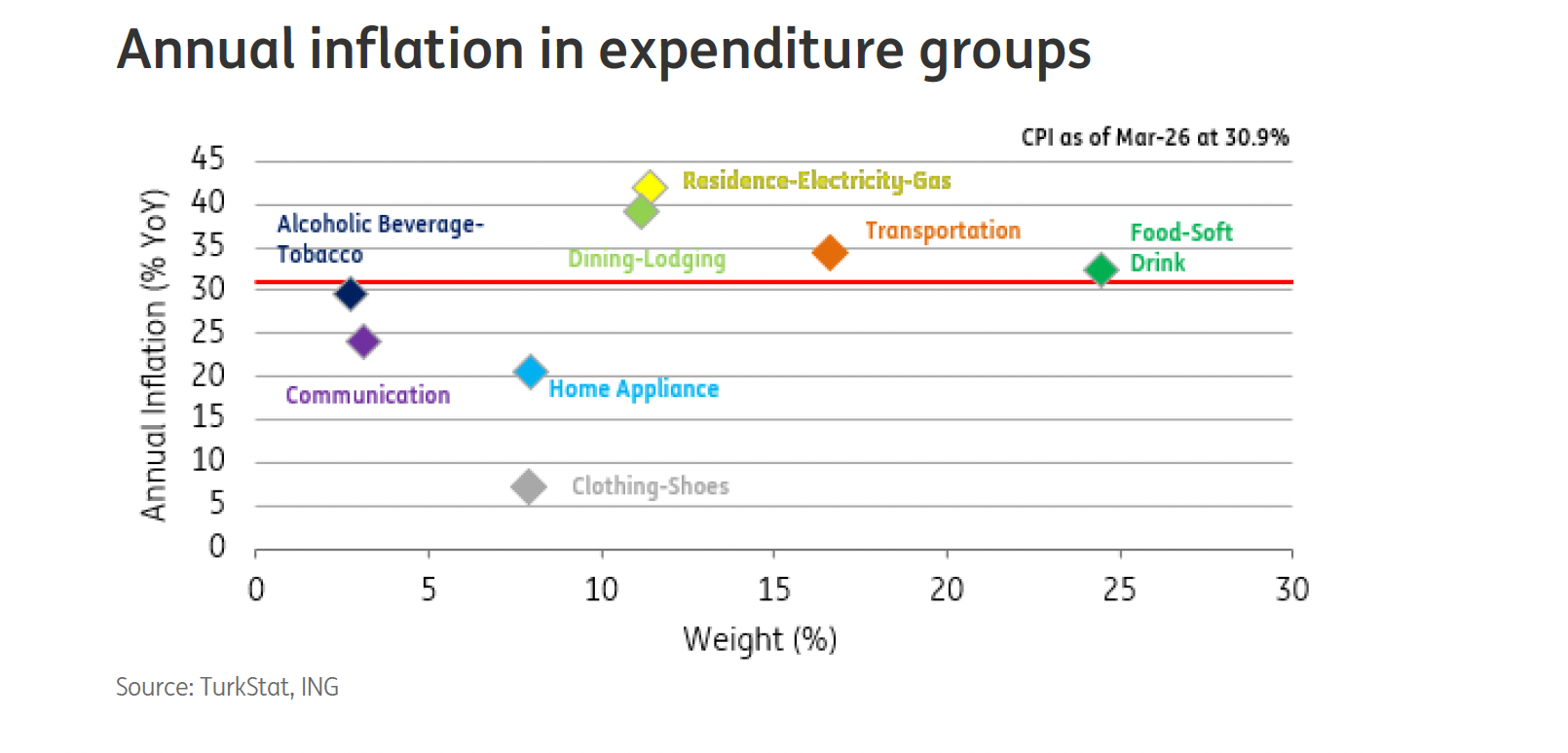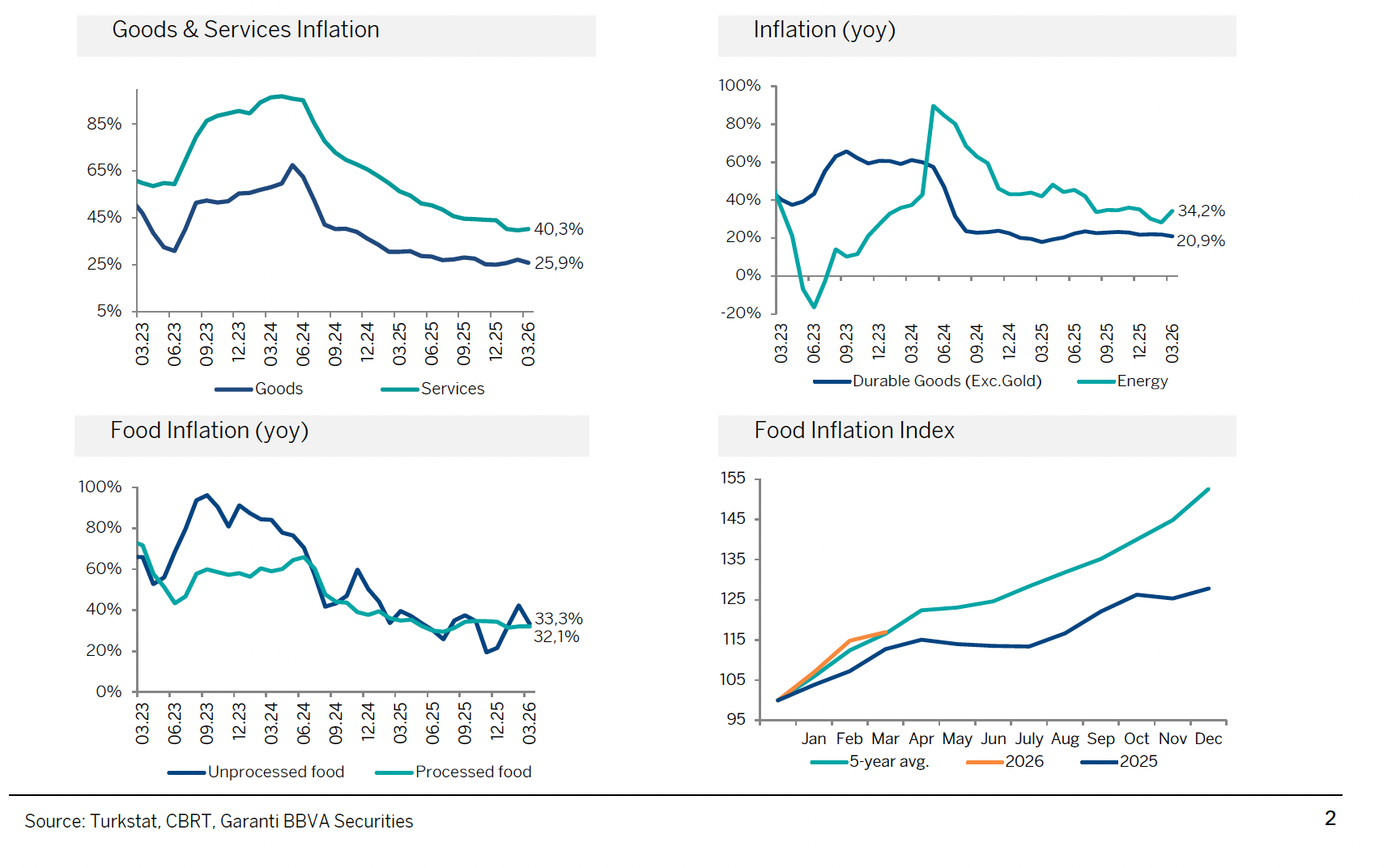 Enerji fiyatlarındaki bu baskı sadece doğrudan tüketim kalemlerini değil, aynı zamanda üretim maliyetlerini de derinden etkiliyor. Mart ayında Üretici Fiyat Endeksi (ÜFE) aylık bazda %2,3 artarak yıllık bazda %28,1 seviyesine yükseldi. Son beş aydır %27-28 bandında seyreden üretici enflasyonundaki bu kıpırdanma, sanayi maliyetleri üzerindeki baskının canlılığını koruduğunu gösteriyor. Özellikle kok kömürü, rafine edilmiş petrol ürünleri, kimyasallar ve ana metaller grubundaki artışlar, jeopolitik risklerin sanayi hammaddeleri üzerindeki doğrudan etkisini yansıtıyor. Analistler, küresel emtia fiyatlarındaki oynaklığın ve özellikle petrol fiyatlarındaki belirsizliğin, ÜFE trendi üzerinden tüketici fiyatları üzerinde bir “maliyet itişli” baskı unsuru olarak kalmaya devam edeceği konusunda uyarıyor.