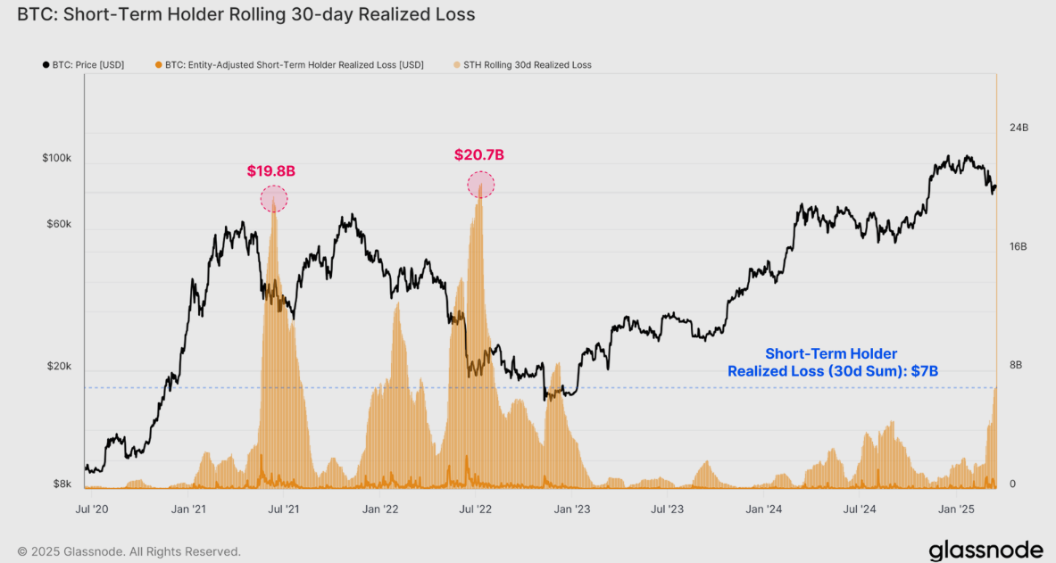 Bu düşüş, piyasadaki son daralmaya büyük ölçüde katkıda bulunan daha baskılı bir kısa vadeli holder grubuna işaret ediyor. Glassnode, “Kısa Vadeli Holder kayıplarının 30 günlük toplamını değerlendirdiğimizde, yeni yatırımcıların büyük bir kısmının muazzam düşüş baskısı altında teslim olduğunu görüyoruz” dedi.