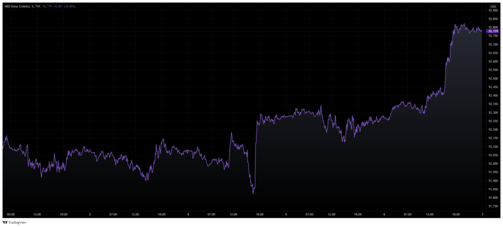 ABD Doları Endeksi (DXY). Kaynak: TradingViewNFP verilerinin üzerine yükseliş yaşayan ABD doları, dolar endeksinin de 92.7’yi görmesini sağladı. Dolara yönelik güven, yatırımcılar tarafından “hedge”, yani riskten korunma olarak görülen altına yönelik ilgiyi azaltıyor olabilir. Altının ons fiyatı, Cuma gününü 1.763 dolardan kapattı. Verilere göre altın, 1.763 dolar seviyesini en son Haziran ayının son günlerinde görmüştü.