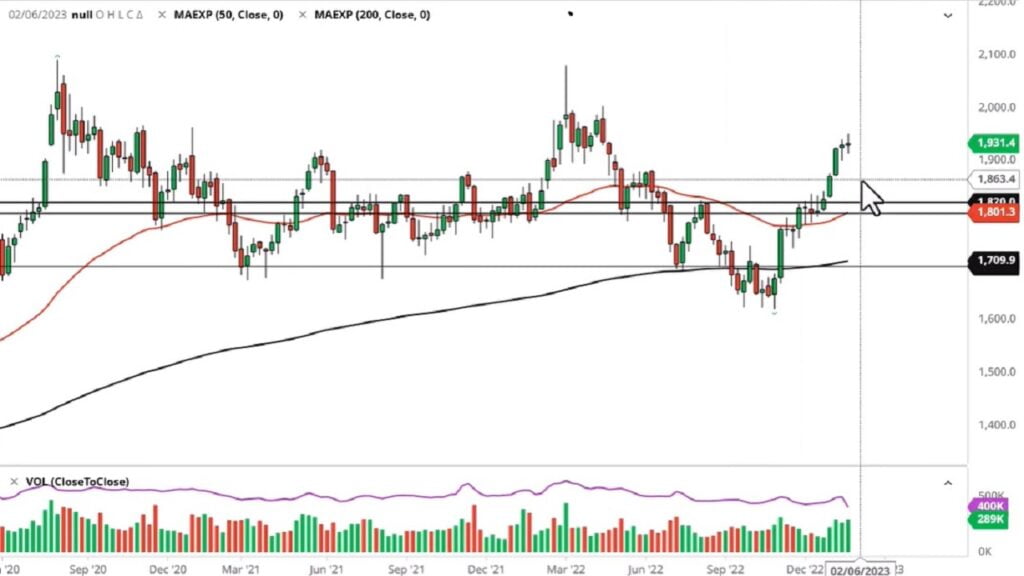 Bu noktada, 1.800 dolar seviyesinin yakından dikkat etmeniz gereken önemli bir destek seviyesi olduğuna inanıyorum. Bunu kaybedersek, bu olağanüstü derecede olumsuz olur. Kabul ediyorum, bu şu an bulunduğumuz noktanın 130 dolar altında. Bu nedenle, açığa satış yapmayı düşünmeniz için daha çok yolumuz olduğunu düşünüyorum. Öte yandan, bu hafta için mum çubuğunun tepesini çıkarırsak, sonunda ulaşmaya çalışacağımızı düşündüğüm bir alan olan 2.000 dolar seviyesine bakabiliriz. Bu son zamanlarda biraz çift tepeli bir alandı ve buna çok dikkat etmemiz gerekiyor. Alternatif olarak, bu bir süredir gidip gelen bir piyasa. Ayrıca, 2.000 dolar seviyesi, son 3 yılda birkaç kez test edildiğini gördüğümüz aralığın en üstünde.