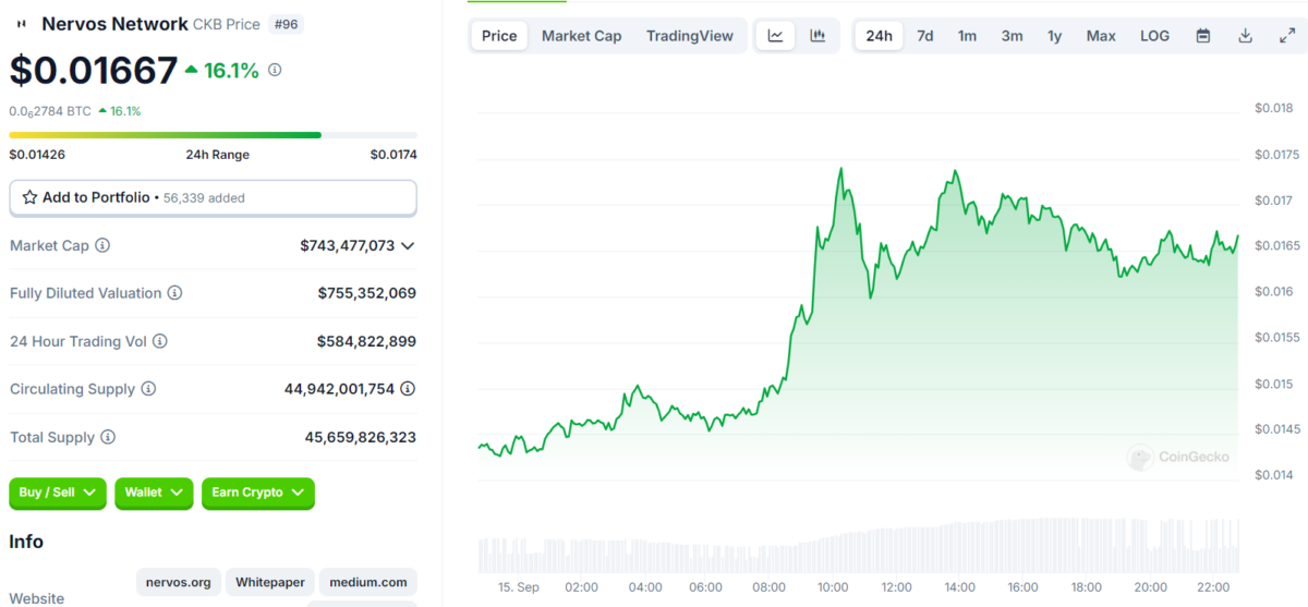 Nervos Network (CKB), bu hafta CoinMarketCap verilerine göre %97’yi aşan bir yükselişle en çok kazanan kripto para birimi oldu. Bununla birlikte CKB, haftaya temkinli bir başlangıç yaparak 0.008 dolar seviyelerinde işlem görüyordu. Ancak 13 Eylül’de fiyatı hızla yükselerek 0.013 dolara ulaştı. Haftanın sonunda ise CKB, yaklaşık 0.014 dolardan işlem görüyordu. Şuan ise CKB’nin fiyatı 0.017 dolar seviyelerinden işlem görüyor. Token’ın piyasa değeri %19 artışla 754 milyon dolara ulaştı. Bununla birlikte kripto para işlem hacmi %60’ın üzerinde bir düşüşle 330 milyon dolardan 130 milyon dolara geriledi.