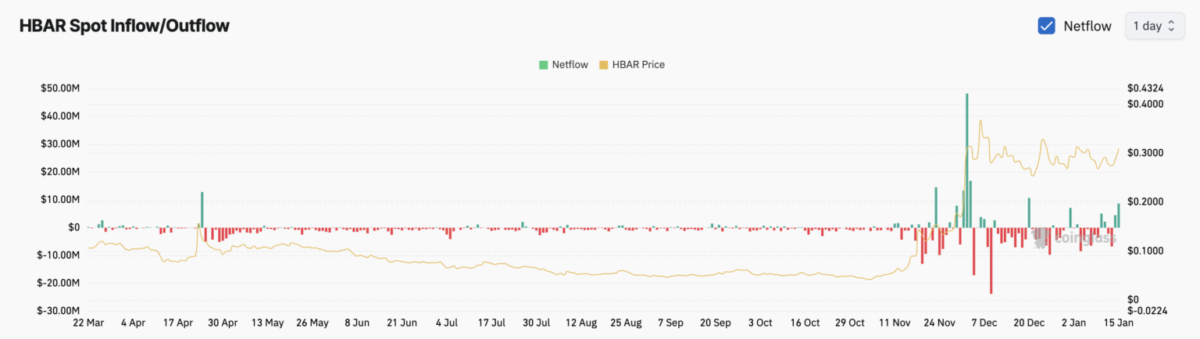 HBAR’ın spot işlemlerindeki hacmi 8 milyon dolar seviyesini aştı. Böylece, son 27 günün en yüksek değerine ulaştı. Bu artış, Hedera’nın tokenine yönelik talebin arttığını gösteriyor. Ayrıca, yatırımcıların bu tokenin kısa vadeli performansı konusunda iyimser olduğunu ortaya koyuyor. Spot işlem hacmindeki artış genellikle olumlu fiyat hareketlerinin habercisi olarak kabul edilmektedir. Bu durum HBAR’ın son 24 saatte %10 değer kazanmasına katkı sağladı.