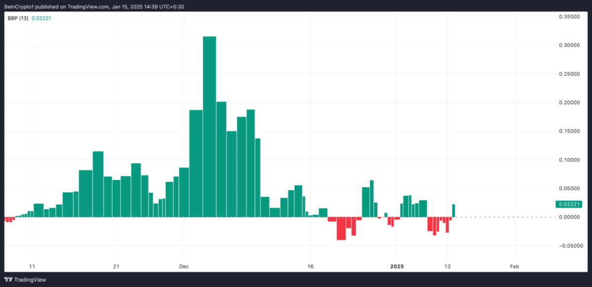 Pozitif Elder-Ray Endeksi değeri, varlık üzerinde güçlü bir talep olduğunu ve alıcıların satıcıları geride bıraktığını ifade eder.