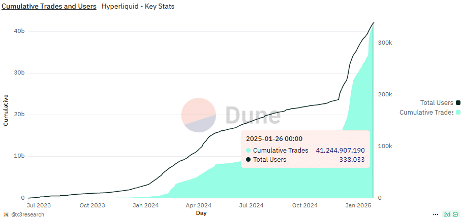 Kripto analisti Miles Deutscher, Hyperliquid üzerindeki işlem sayısının ve kullanıcı tabanının hızla büyüdüğüne dikkat çekti. Bu durum, projenin güçlü bir ürün-piyasa uyumu yakaladığını ve daha geniş bir benimsenme sürecine girdiğini gösteriyor.