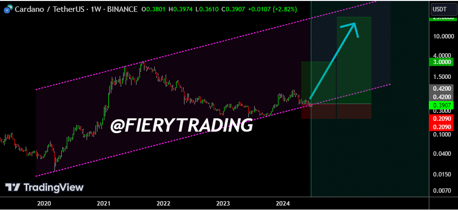 Fiery Trading kısa süre önce Cardano’nun (ADA) fiyatının 40 dolara kadar yükselme olasılığına ilişkin bulgularını yayınladı. Bulgularına göre, Cardano aynı kanalda hareket etmeye devam ederse, 40 dolar hedefine ulaşabilir. Ancak bir şartı var. Kripto piyasası ayılarla olan savaşını kaybederken, boğa piyasası başladığında böylesine büyük bir hedefe ulaşılabilir.