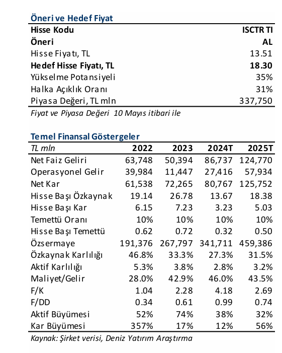 ■ İş Bankası için AL önerimizi koruyoruz, hedef fiyatımız ise 16.50 TL olarak revize ediyoruz (önceki: 19.00 TL).