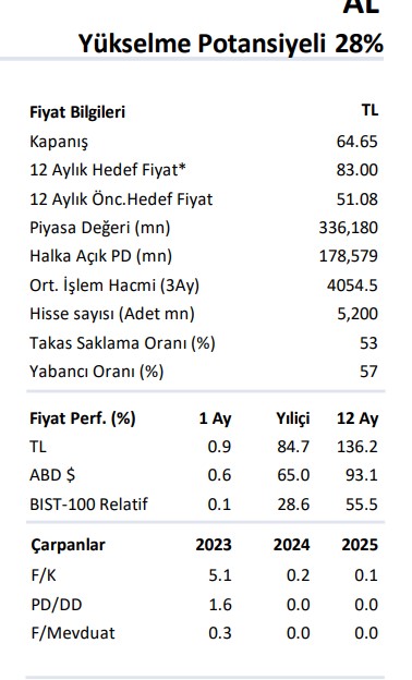 Açıklanan ikinci çeyrek sonuçlarından sonra 2024 hedeflerinin aşağı yönlü revizyonu hisse üzerinde bir miktar daha baskıyı sürdürebilir. Biz de 2024 net kar tahminimizi TL 75 milyardan TL 64 milyar seviyesine güncelledik.