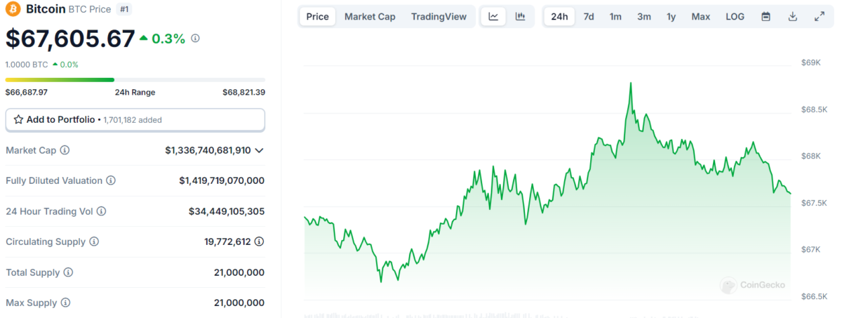 Kripto para fiyatları bugün küresel çapta ilgi çekmeye devam ediyor. Bitcoin (BTC) fiyatı, volatiliteyle karşı karşıya ve 68 bin dolar seviyelerinden işlem görmeye devam ediyor. Ethereum (ETH) fiyatı ise ağırlıklı olarak kırmızı bölgede işlem görüyor. Solana ve XRP fiyatları daha geniş piyasa trendini takip ederek hafif düşüşler görüyor.. Bununla birlikte, küresel kripto piyasa değeri yüzde 0,62’lik bir artışla 2,33 trilyon dolara yükseldi. Bununla birlikte, toplam piyasa hacmi bugün yüzde 14,35’lik bir düşüşle 71,8 milyar dolara geriledi.