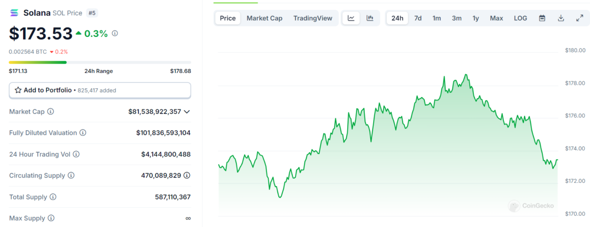 SOL fiyatı geçtiğimiz gün oldukça volatil bir seyir izledi. Şuan ise yüzde 0,2 oranında hafif bir artışla 174,47 dolar seviyelerine yükseldi. Gün içi en düşük ve en yüksek seviyeleri sırasıyla 170,99 ve 179,00 dolar olarak kaykayıtlara geçti. Solana’nın piyasa değeri bugün 82,04 milyar dolar seviyesinde bulunuyor. Özellikle, Solana kurucu ortağı Antoly Yakovenko kısa süre önce Ethereum benzeri yönetici katmanları inşa etme planlarını ima ederek piyasa tartışmalarına yol açtı.