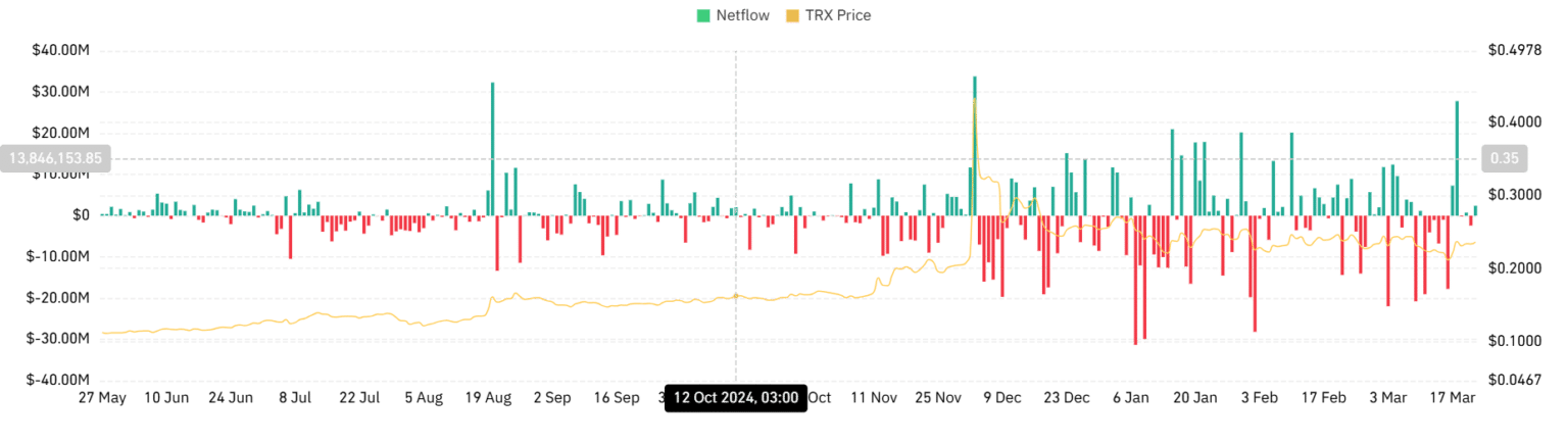 TRX’in net çıkışları pozitif seyrederek 2.39 milyon dolara ulaştı. Bu, borsalara girişlerin arttığını ve yatırımcıların satış yapma eğiliminde olduğunu gösteriyor.
