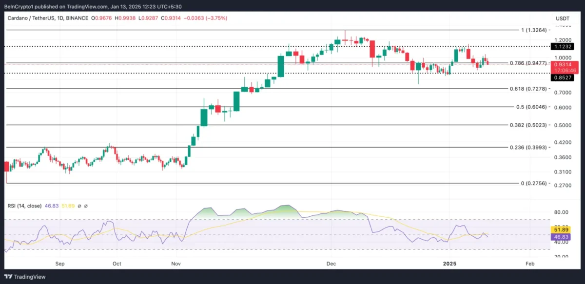 46.83 seviyesinde ve düşüş trendinde olan ADA’nın RSI değeri, satış baskısının yoğun olduğunu ve bu durumun alıcılar harekete geçmezse daha fazla fiyat düşüşüne yol açabileceğini ifade ediyor. Eğer alım aktivitesi daha da zayıflarsa ADA fiyatı 0.85 dolar seviyesine kadar düşebilir. Ancak, piyasa duyarlılığı değişir ve ADA birikimi artarsa, fiyatın 1.12 dolar seviyesine yükselmesi mümkün olabilir.