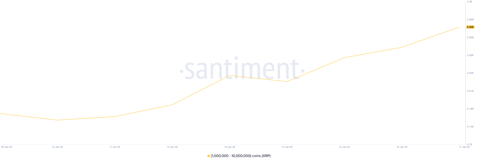 Uzun bir konsolidasyon döneminin ardından, kripto para birimi faaliyeti bu hafta toparlandı ve küresel kripto piyasa değeri bu dönemde %2 arttı. Bu yenilenen ivme, büyük yatırımcıları belirli altcoinleri biriktirmeye teşvik etti. Ripple (XRP), Litecoin (LTC) ve Toncoin (TON) balina faaliyetlerinin arttığı varlıklar arasında yer alıyor. Öncelikle Ripple’ın XRP’si bu hafta balina faaliyetlerinde bir artış gördü. Santiment’e göre, elinde 1.000.000 ila 10.000.000 XRP tokenı tutan büyük yatırımcılar, son yedi gün içinde mevcut piyasa fiyatlarıyla 590 milyon doların üzerinde değere sahip 180 milyon token satın aldı.