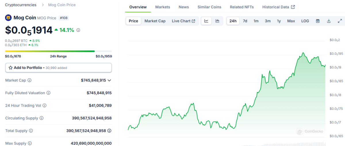 Dogecoin (DOGE) %15 civarında bir değer kazanarak 0,1668 dolara ulaştı. Shiba Inu (SHIB) ise %8 yükselişle 0,00001835 dolardan işlem görüyor. Bunun yanında Pepe Coin (PEPE), dogwifhat (WIF) ve POPCAT gibi diğer meme coin’ler de son 24 saatte %6 ila %17 arasında artış gösterdi. Meme coin’lerin hızla yükselmesi, bu alandaki yatırımcıların ilgisini çekmeye devam ediyor.