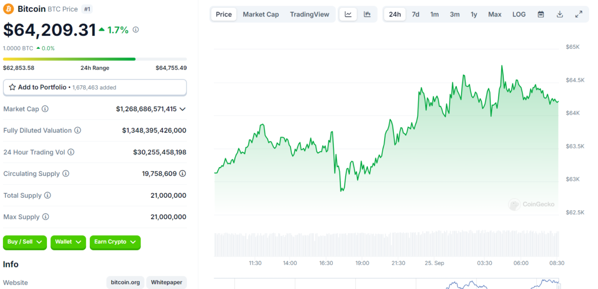 Bitcoin, son 24 saat içinde %2 yükselerek 64.294 dolara ulaştı. En düşük fiyatı 62.751 dolar, en yüksek fiyatı ise 64.804 dolar olarak kayıtlara geçti. Bununla birlikte bu hareket, 16,8 milyon dolarlık Bitcoin ETF girişleriyle desteklendi ve yatırımcıların ilgisi bu yükselişi hızlandırdı. Ayrıca, Bitcoin’in piyasa değeri 1,27 trilyon dolara çıktı. Bitcoin’in piyasa hakimiyeti ise %56,27’ye yükseldi. Kriptokoin.com olarak da bildirdiğimiz gibi, Whale Alert verilerine göre, son 24 saatte büyük Bitcoin transferleri gerçekleşti, bu da fiyat hareketlerine ekstra bir gizem kattı.