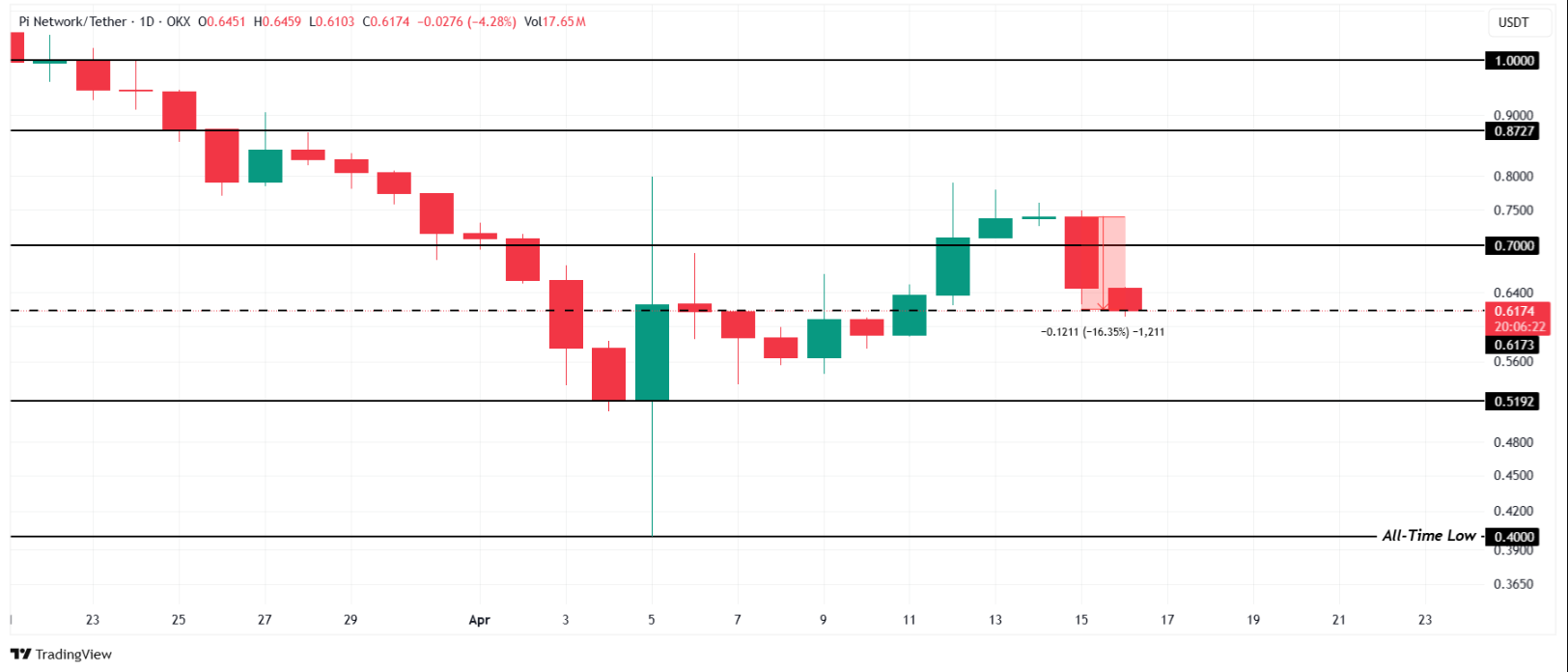 Pi Coin, son 24 saatte yüzde 16 değer kaybederek 0,61 dolar seviyesine kadar düştü. Bu seviye şu an için kritik bir destek olarak çalışıyor. Ancak satış baskısı sürerse ve bu destek aşağı yönlü kırılırsa, sıradaki durak 0,51 dolar olacak